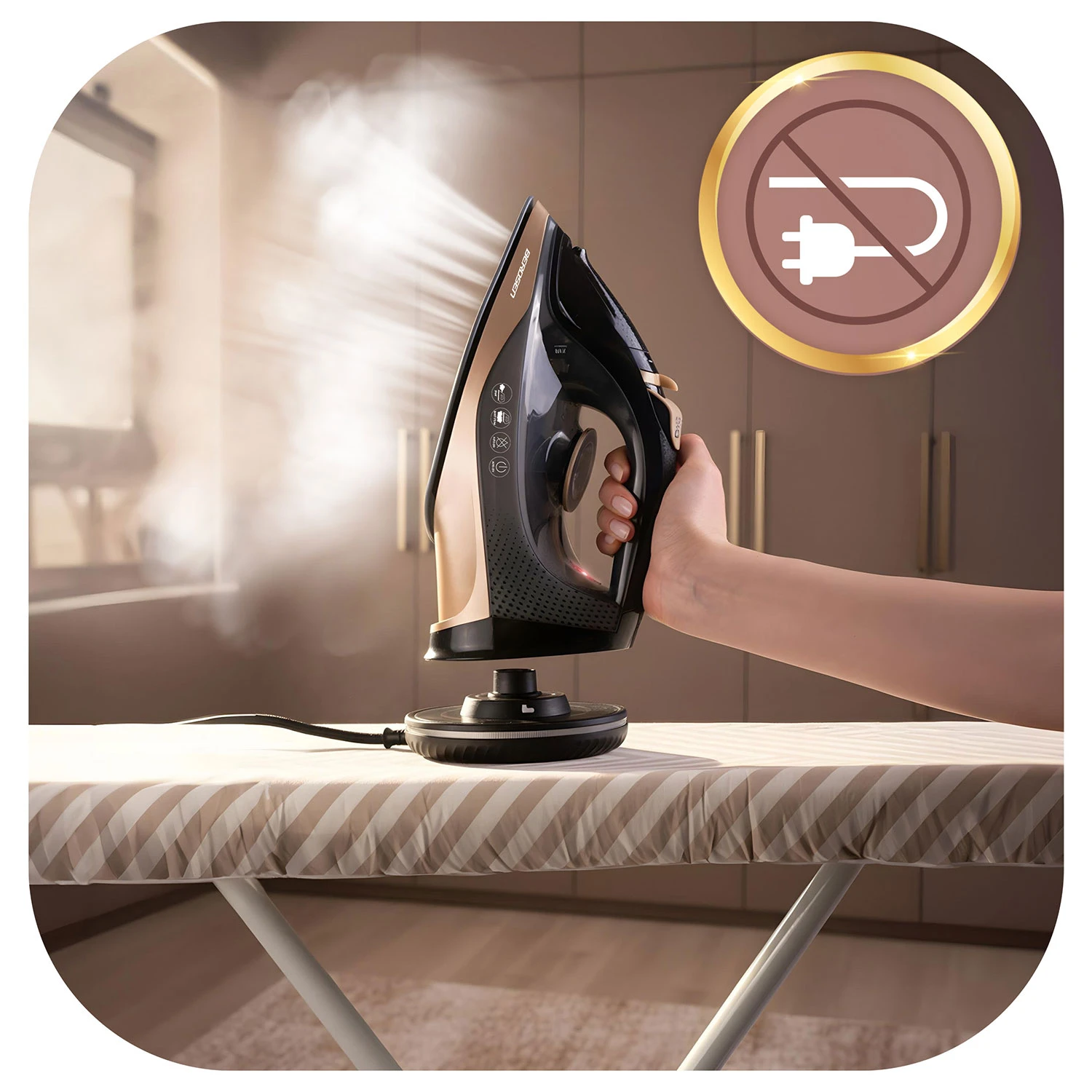 ✅ Bezprzewodowe i klasyczne 2w1 – koniec z ograniczeniami długości przewodu! Jeżeli chcesz możesz tez zablokować podstawkę na stałe i pracować jak klasycznym żelazkiem.